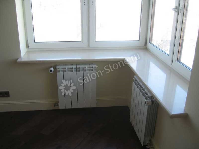 Угловой подоконник молочного оттенка из кварцевого агломерата