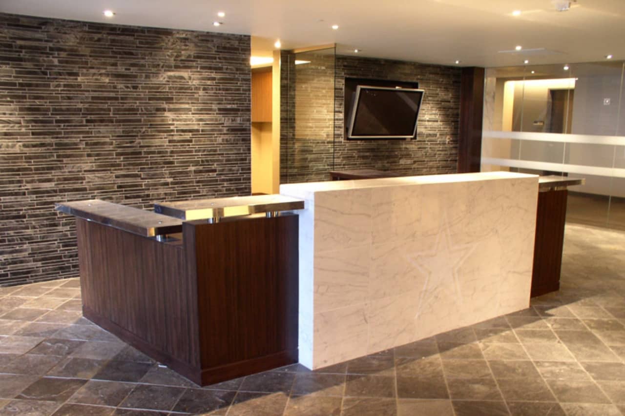 Наша компания специализируется на изготовление стоек ресепшн из искусственного камня, предлагаем широкий спектр услуг от разработки индивидуального проекта до доставки и установки готового изделия. Преимуществом работы с нами является возможность выбора из большого каталога материалов различных текстур и оттенков, что позволяет заказать стойку ресепшн из искусственного камня, идеально подходящую под любой дизайн офисного пространства.
